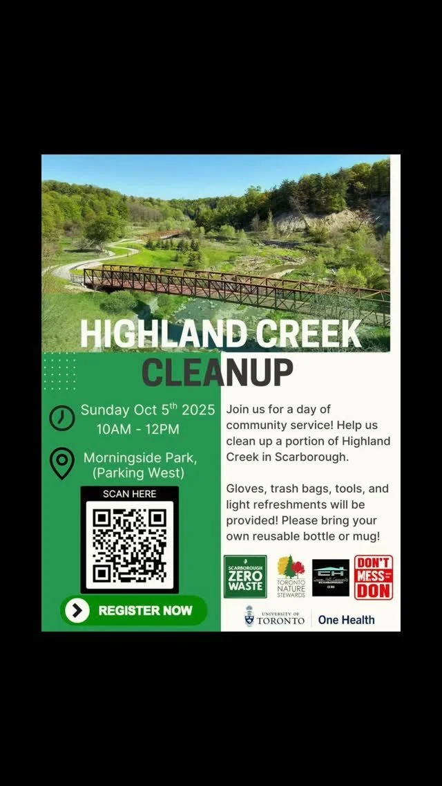 Our next cleanup π§Ή has been scheduled for Sunday October 5th! Along with Toronto Nature Stewards (@torontonaturestewards), Curran Hall Community and the Scarborough Environmental Association (@scarb.env.asc), we’re going to Highland Creek/ Morningside Park in Scarborough to support Scarborough Zero Waste’s (@scarboroughzerowaste) cleanup of the park and the creeks banks. We’ll be meeting at Picnic Area 1A (next to the west parking lot) at 10am.